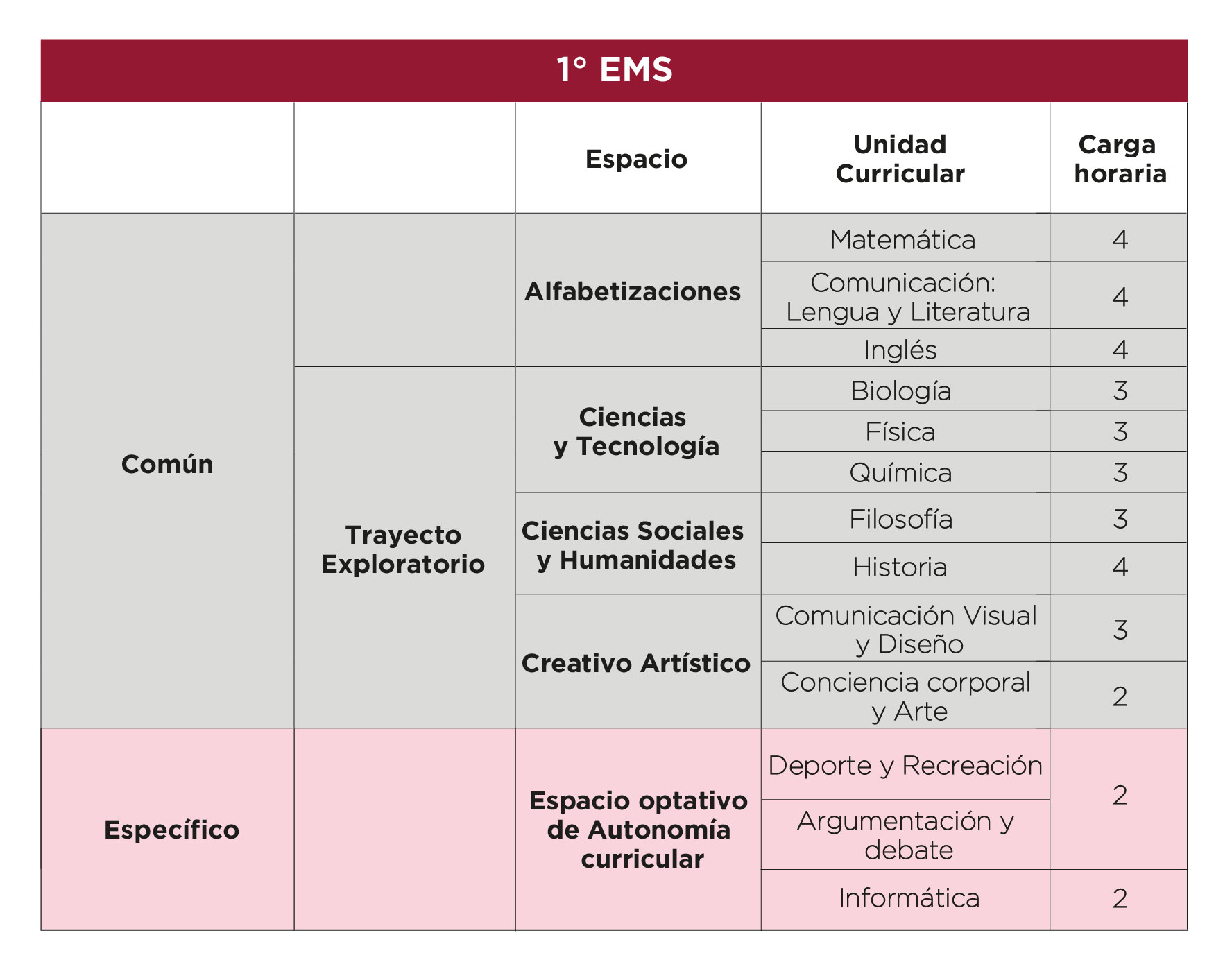 MALLA CURRICULAR 1° EMS